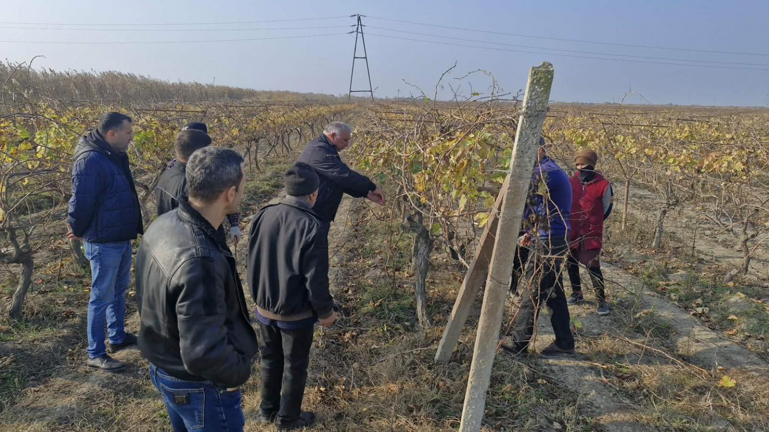 Tarla seminarında Üzümçülük və Şərabçılıq Elmi Tədqiqat İnstitutunun mütəxəssisləri tərəfindən quru bağlama və tənəyə forma verilməsi prosesi fermerlərə əyani nümayiş olunub.