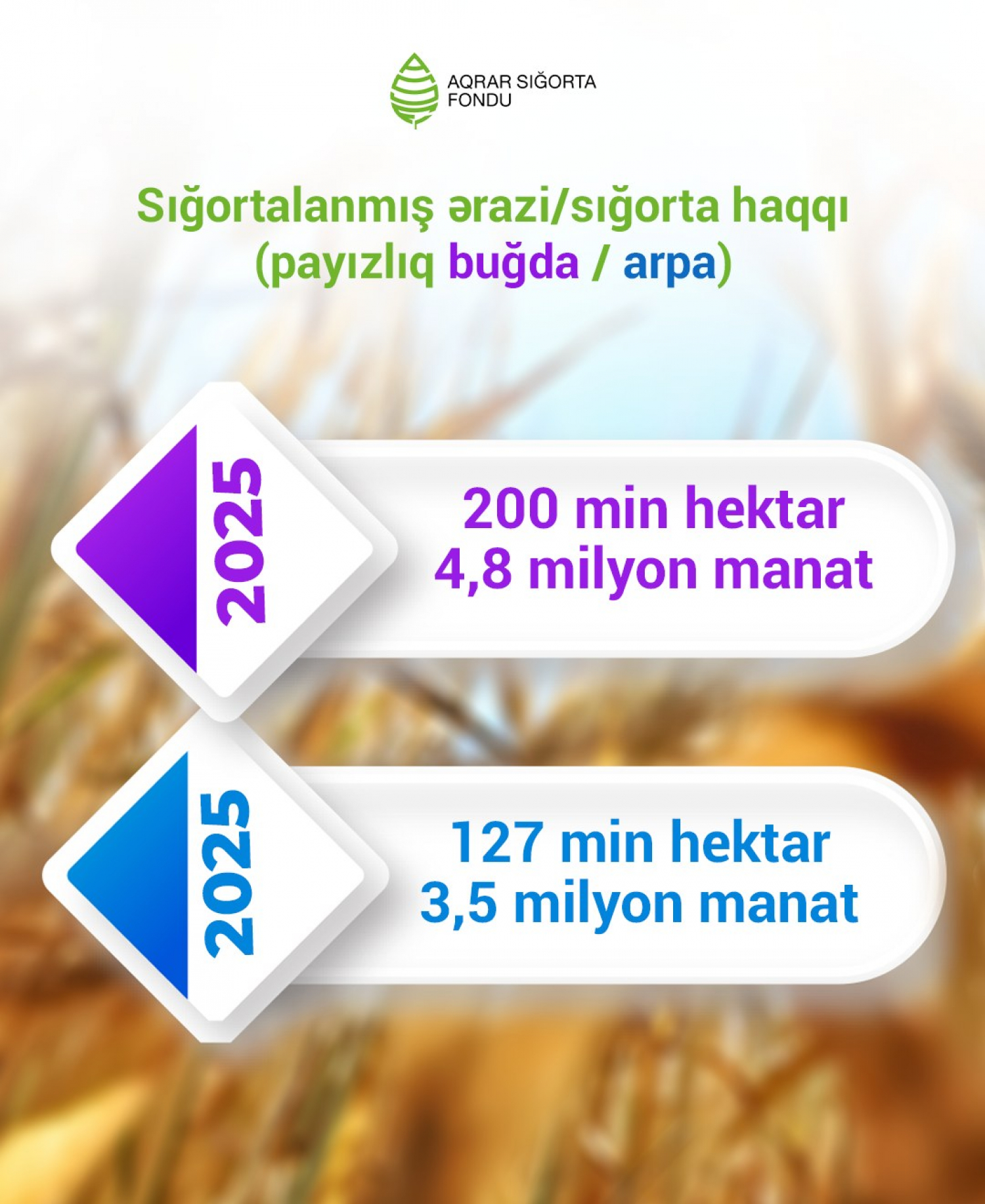 2025-ci ildə Azərbaycanda 127 min hektar payızlıq arpa sahəsi, 200 min hektar isə payızlıq buğda sahəsi sığorta edilib.
