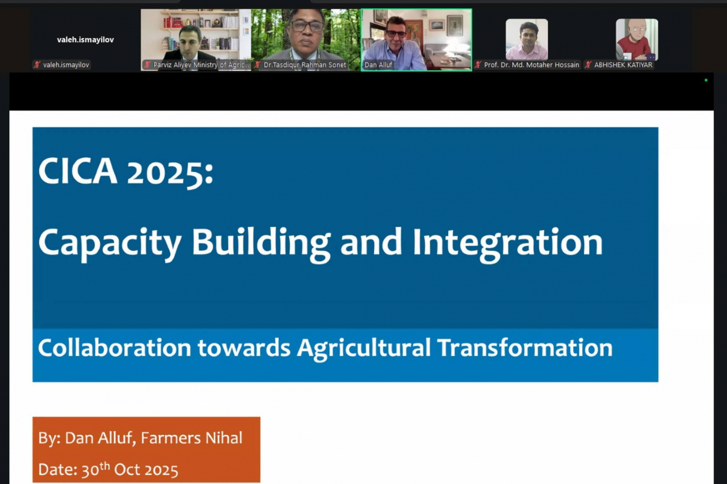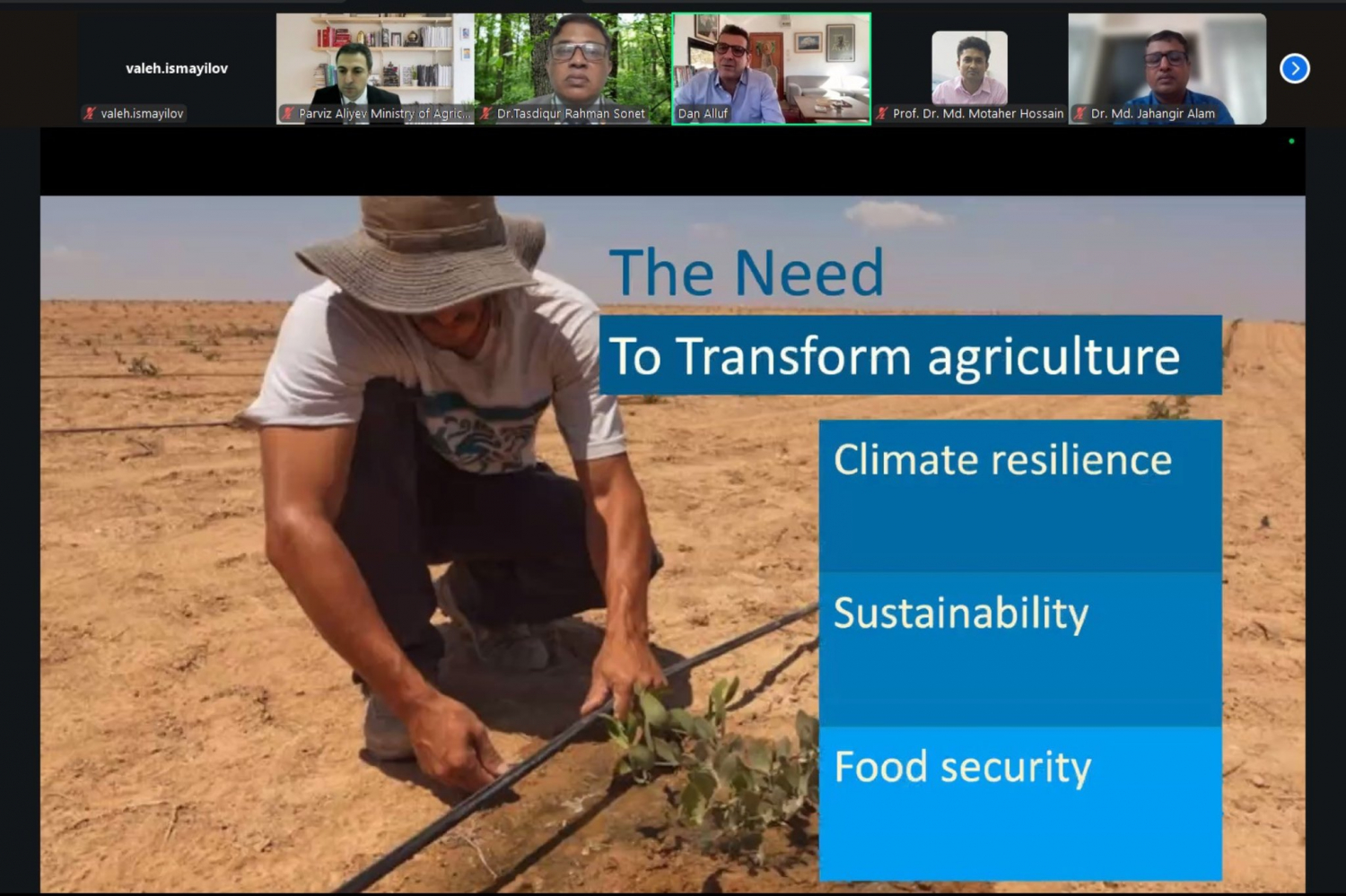 Tədbirdə İsrail və Banqladeşdən olan mütəxəssislər və ekspertlər bitki zərərvericiləri və onlara qarşı müasir mübarizə tədbirləri, pambıqçılığın kənd yerlərinin inkişafına təsiri, aqrar sahədə potensialın gücləndirilməsi, inteqrasiya və kənd təsərrüfatı transformasiyası istiqamətində əməkdaşlıq mövzularında təqdimatlarla çıxış ediblər.